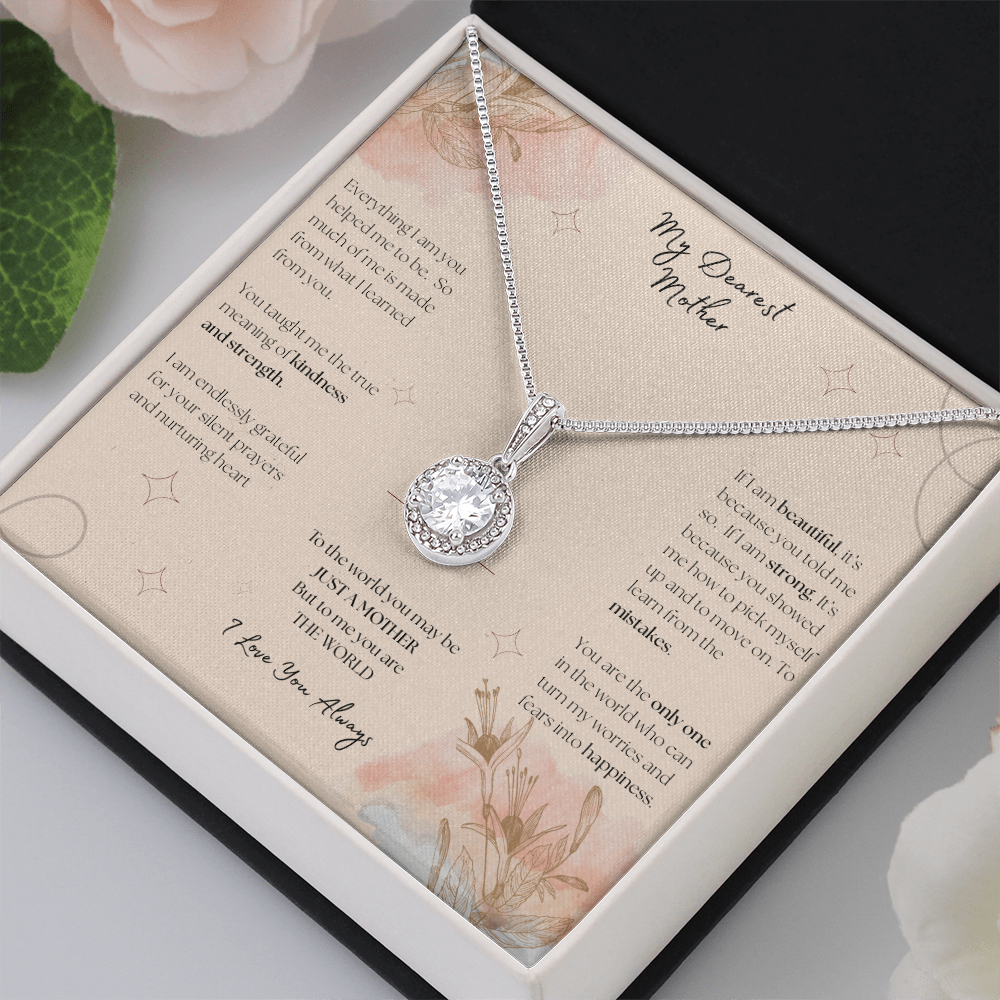 My Dearest Mother, Everything I am you helped me to be. So much of me is made from what I learned from you. You taught me the true meaning of kindness and strength. I am endlessly thankful for your silent prayers and nurturing heart. If I am beautiful, it's because you told me so. If I am strong, it's because you showed me how to pick myself up and to move on. To learn from the mistakes. You are the only one in the world who can turn my worries and fear into happiness. To the world, you may be JUST A MOTHER, but to me, YOU ARE THE WORLD. I Love You Always