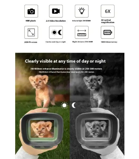 Explore the night with precision using the HD High Power Digital Infrared Monocular Telescope. This advanced night vision device features cutting-edge infrared technology, allowing you to capture full-color images even in low-light or complete darkness. Whether you're stargazing, wildlife observing, or on a night adventure, this monocular delivers exceptional clarity and detail. Its compact design and powerful zoom make it the perfect companion for all your outdoor activities, ensuring you never miss a moment.